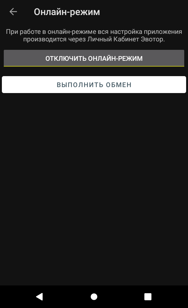 В приложении на терминале нужно перейти в меню приложения, выбрать «Онлайн-режим», и нажать «Выполнить обмен». Настройки приложения из ЛК загрузятся в терминал.