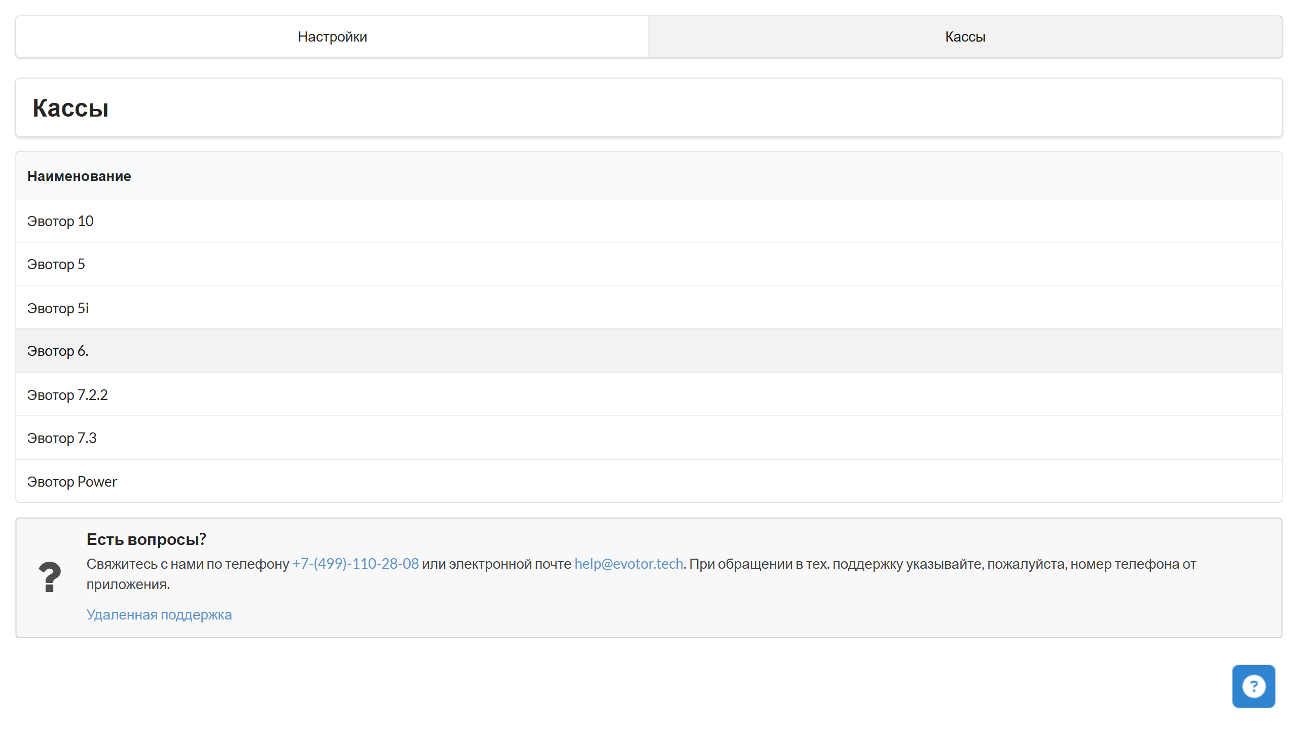 3. Выберите кассу для которой необходимо выполнить настройку.