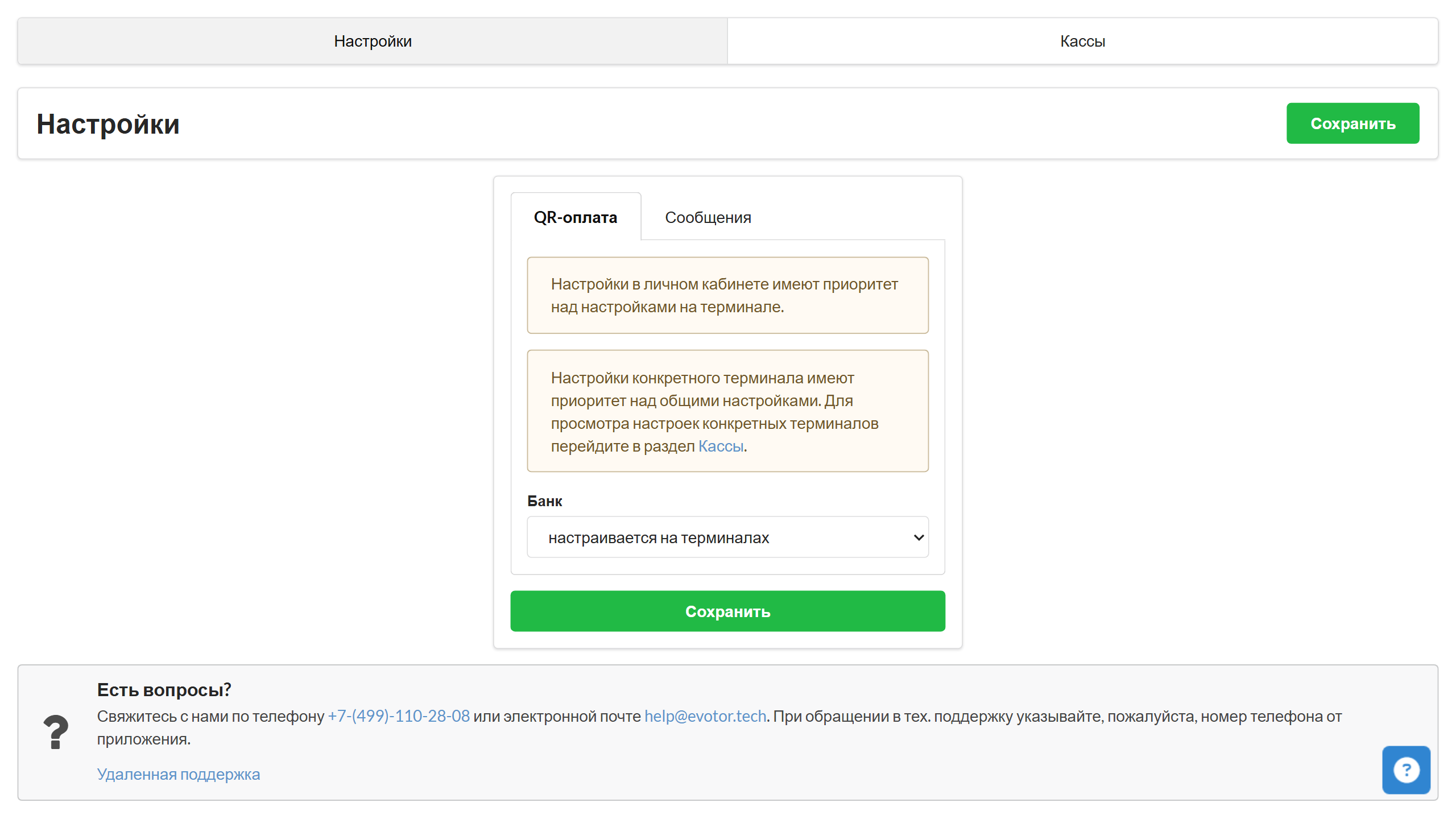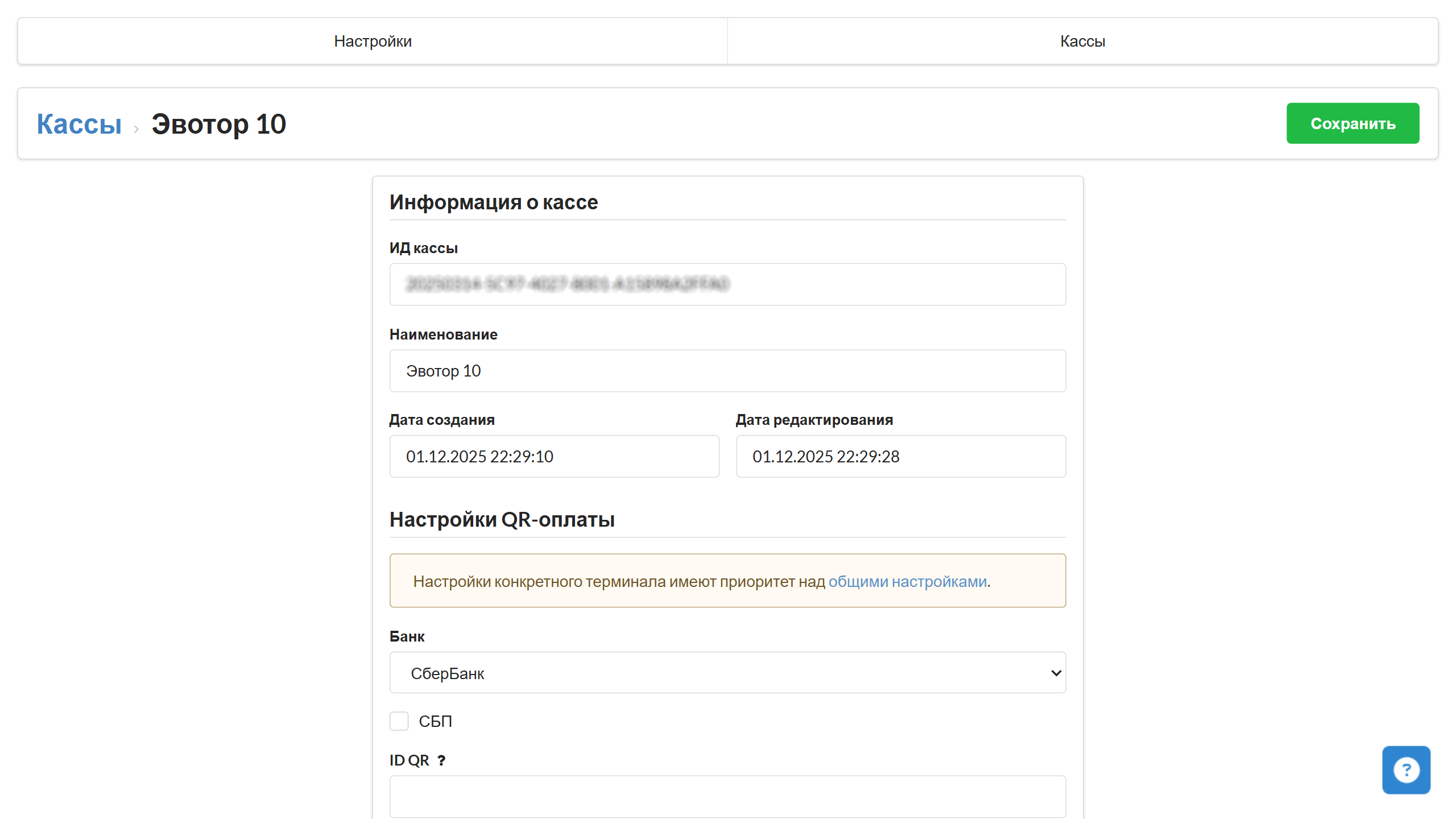 Вы выполнили настройку QR-оплаты для каждой кассы индивидуально.